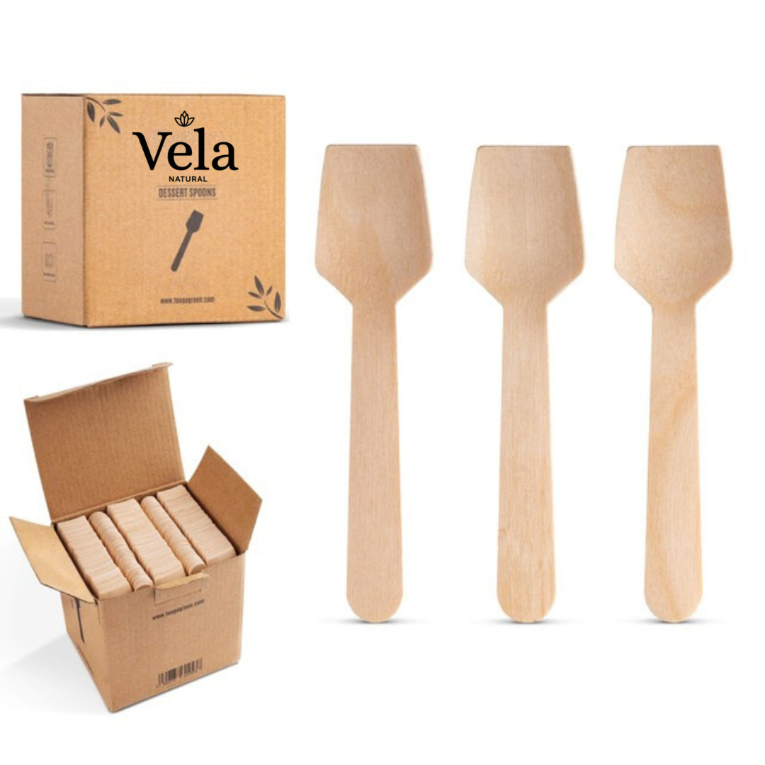 Disposable Wooden Dessert Spoons, Spade (9.5cm)