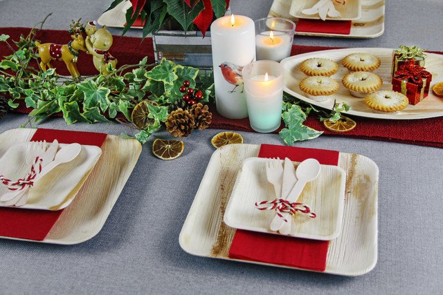 Made from naturally fallen areca palm leaves, these plates combine rustic charm with heavy-duty strength.