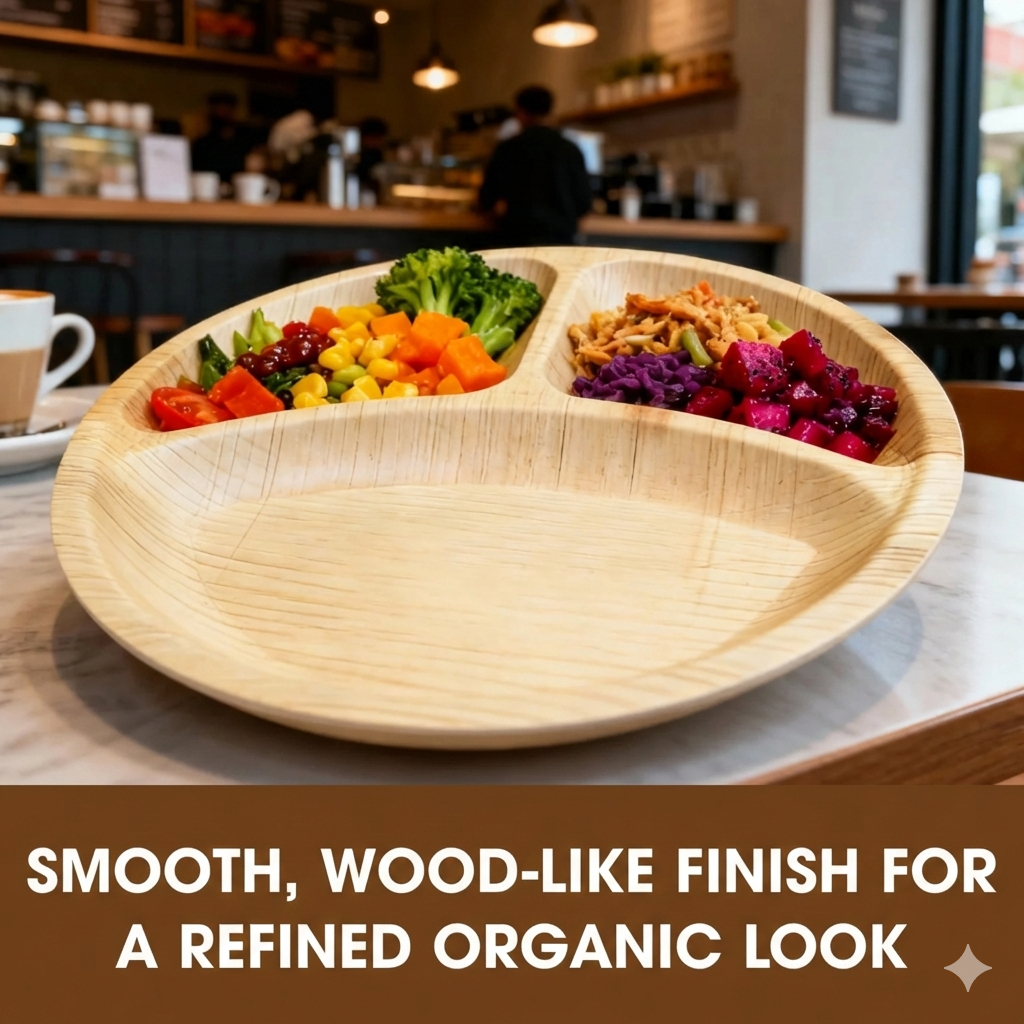 Experience the perfect harmony of elegance and sustainability with VELA NATURAL. Our 10-inch round sectional plates are masterfully crafted from the finest Areca palm leaves, providing a heavy-duty, earth-friendly alternative for any dining occasion.