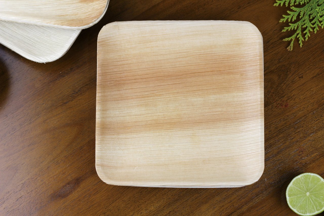 Our 8” medium square palm leaf plates blend functionality with a modern, stylish design.