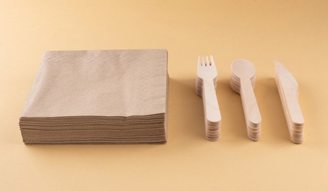 16cm Wooden Cutlery & Brown Napkin Combo: The Ultimate Rustic Service Pack