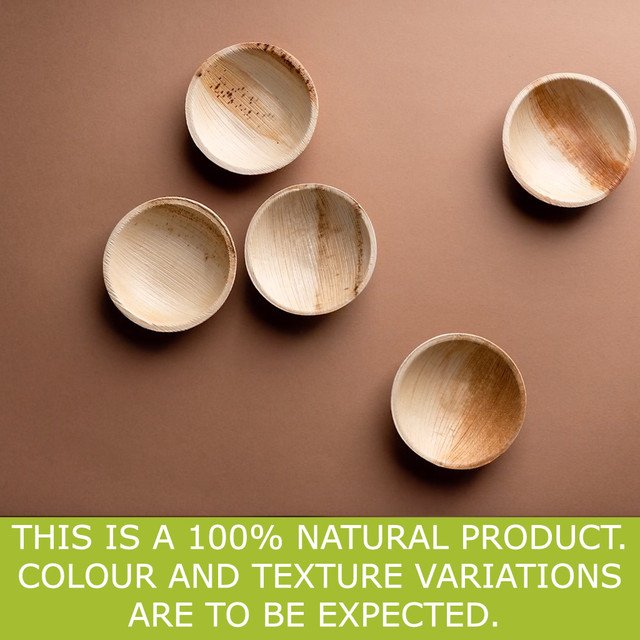 Our 4-inch (10 cm) Round Palm Leaf Dipping Bowls with a 90 ml capacity are a compact, eco-friendly, and stylish solution for serving dips, chutneys, sauces, condiments, and small desserts.
